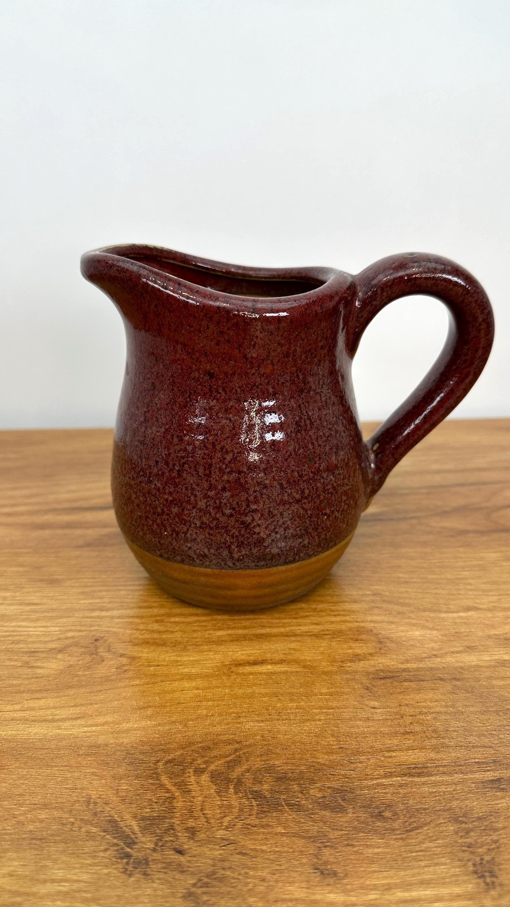 Handcrafted Studio Pottery Pitcher Red and Tan Glazed Vintage Rustic Style